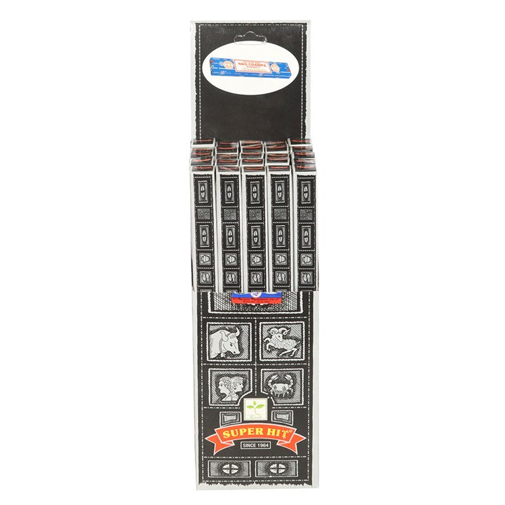 Stock up on the bestselling Satya brand with this box of Superhit incense sticks, featuring 12 packs of the rich, warm, and spicy fragrance. Renowned for its soothing and grounding qualities, this blend is perfect for creating a peaceful ambiance. Sold as a display of 12 packs. Vegan and cruelty-free.